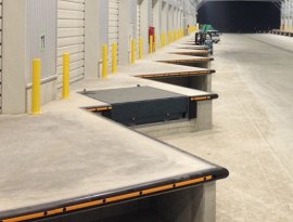 - ジグザグに設計された斜めバースは、同時に多数のウイング車輛の積み下ろしを可能とし、ドライバーの待ち時間短縮と着車台数の効率化を実現しています。