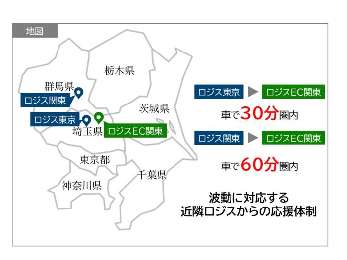 ◆既存拠点「ロジス関東」(群馬県伊勢崎市)と近く、「ロジスEC関東」との拠点間の商品の横持ち距離を短くしながら、集配効率を高めることができる